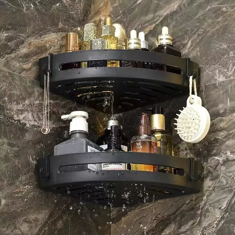 Feature 277: No Drill Bathroom Shelf for Toiletries with Drainage Holes (Black)